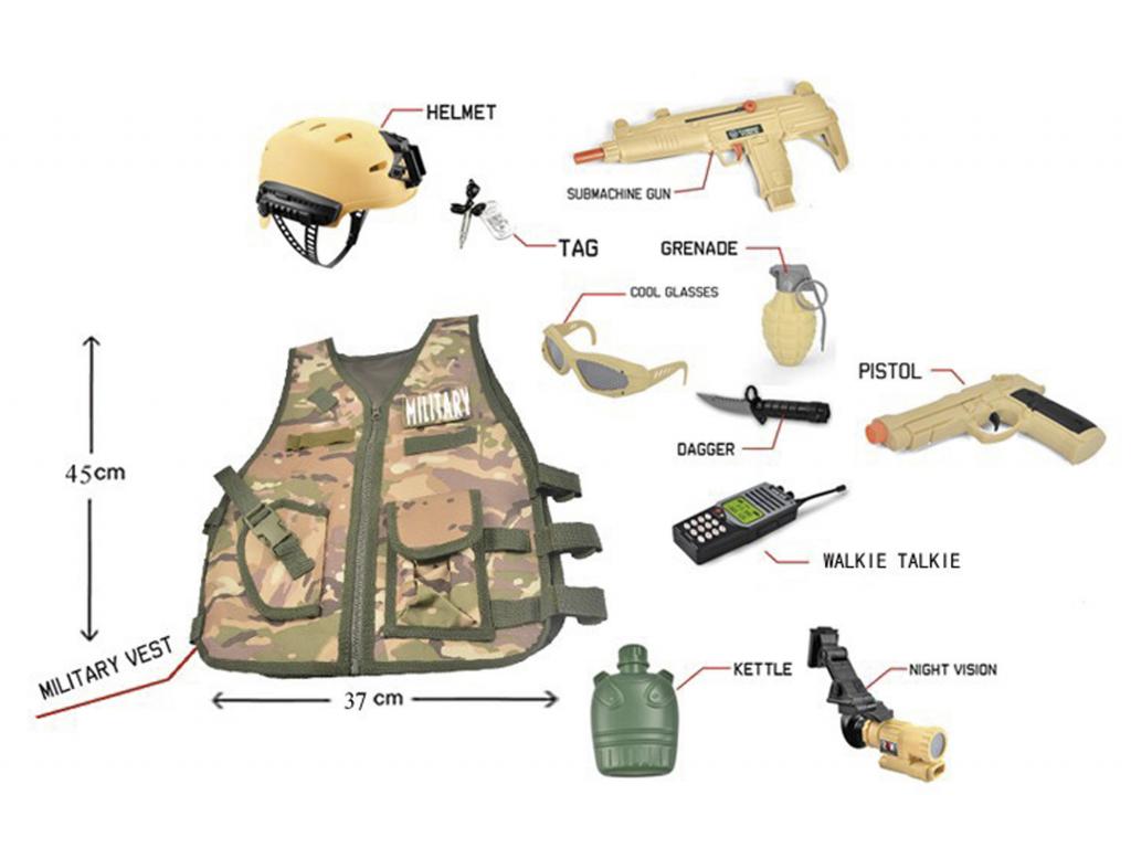 Farsangra vagy halloweenra ideális jelmezötlet lehet ez a katonai szett kiegészítőkkel!