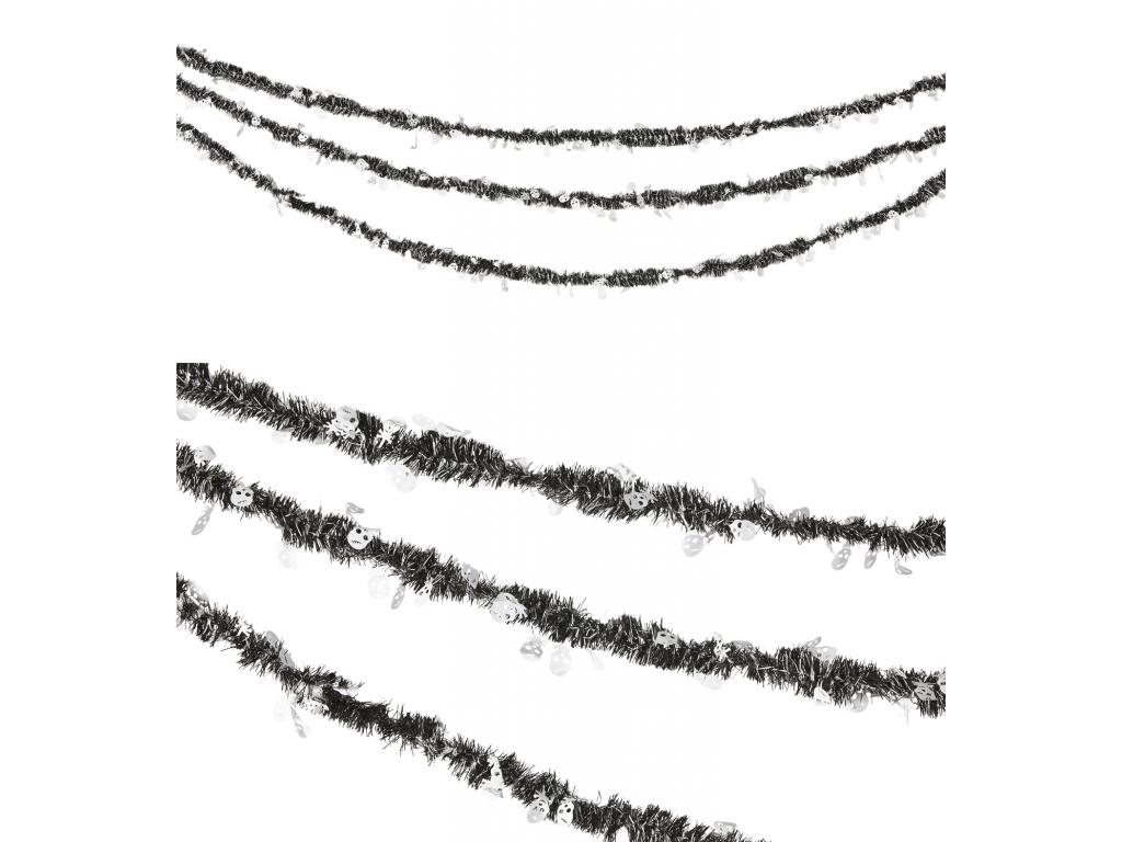 Lametta girland díszfüzér koponyás díszítéssel, 4,27 méter |
