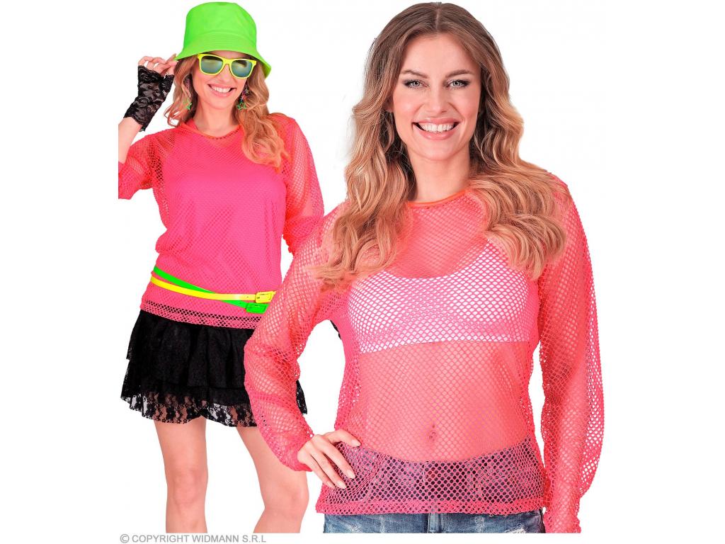 Neon pink színű hosszú ujjú háló póló női jelmez |
