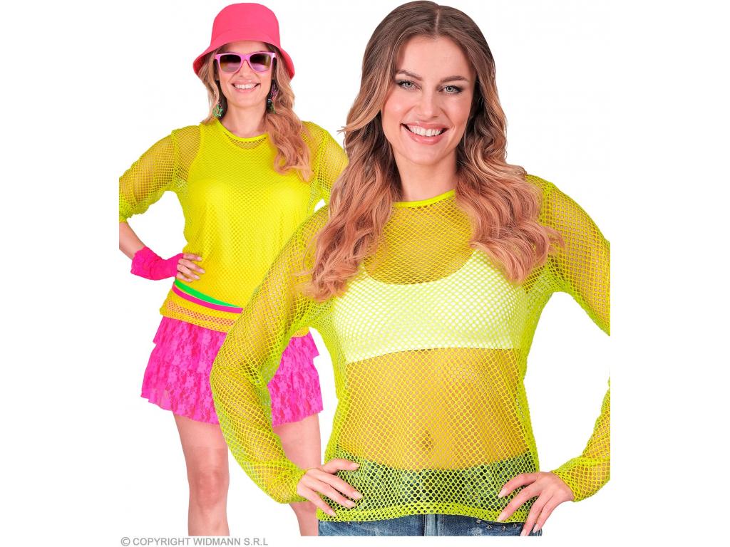 Neon sárga színű hosszú ujjú háló póló női jelmez |